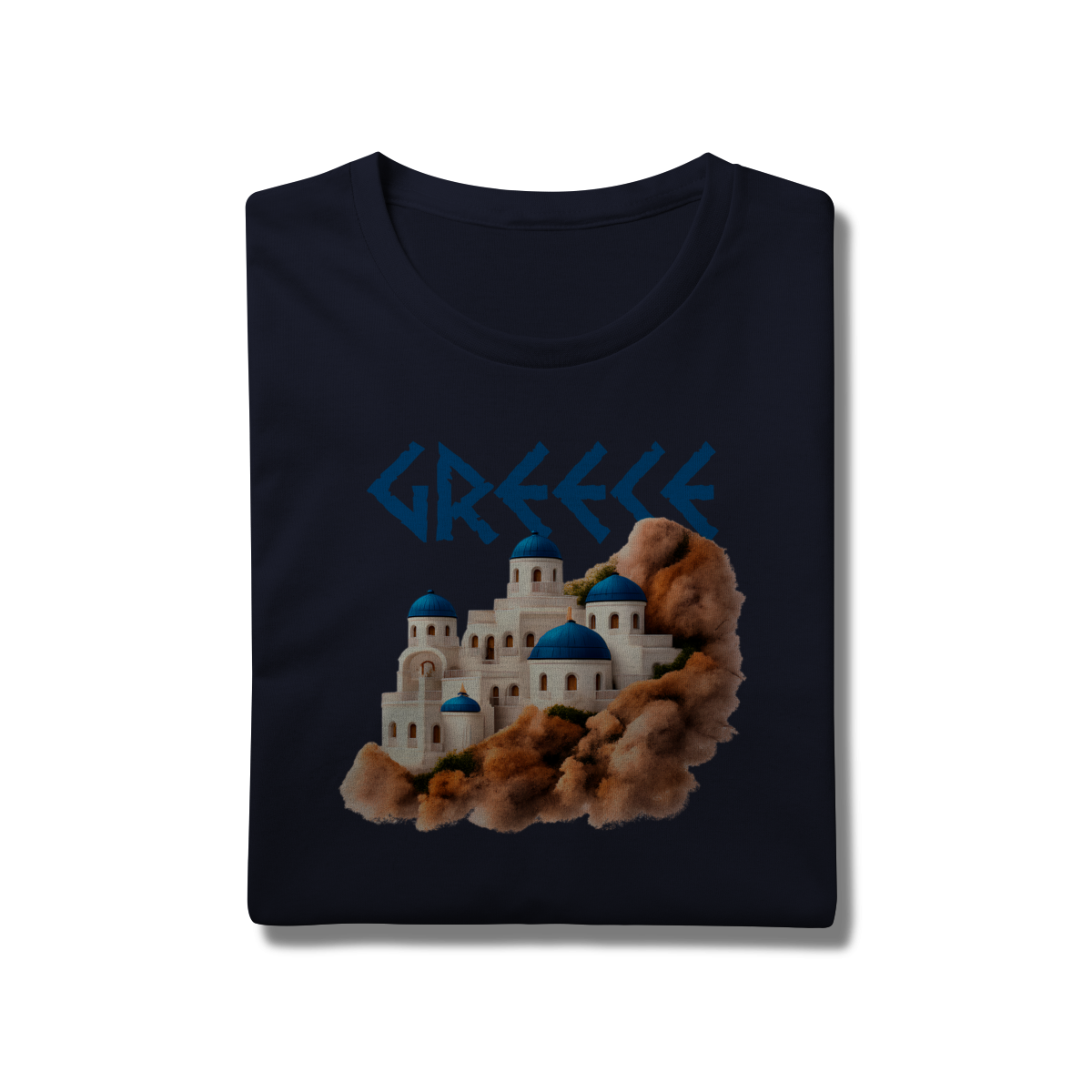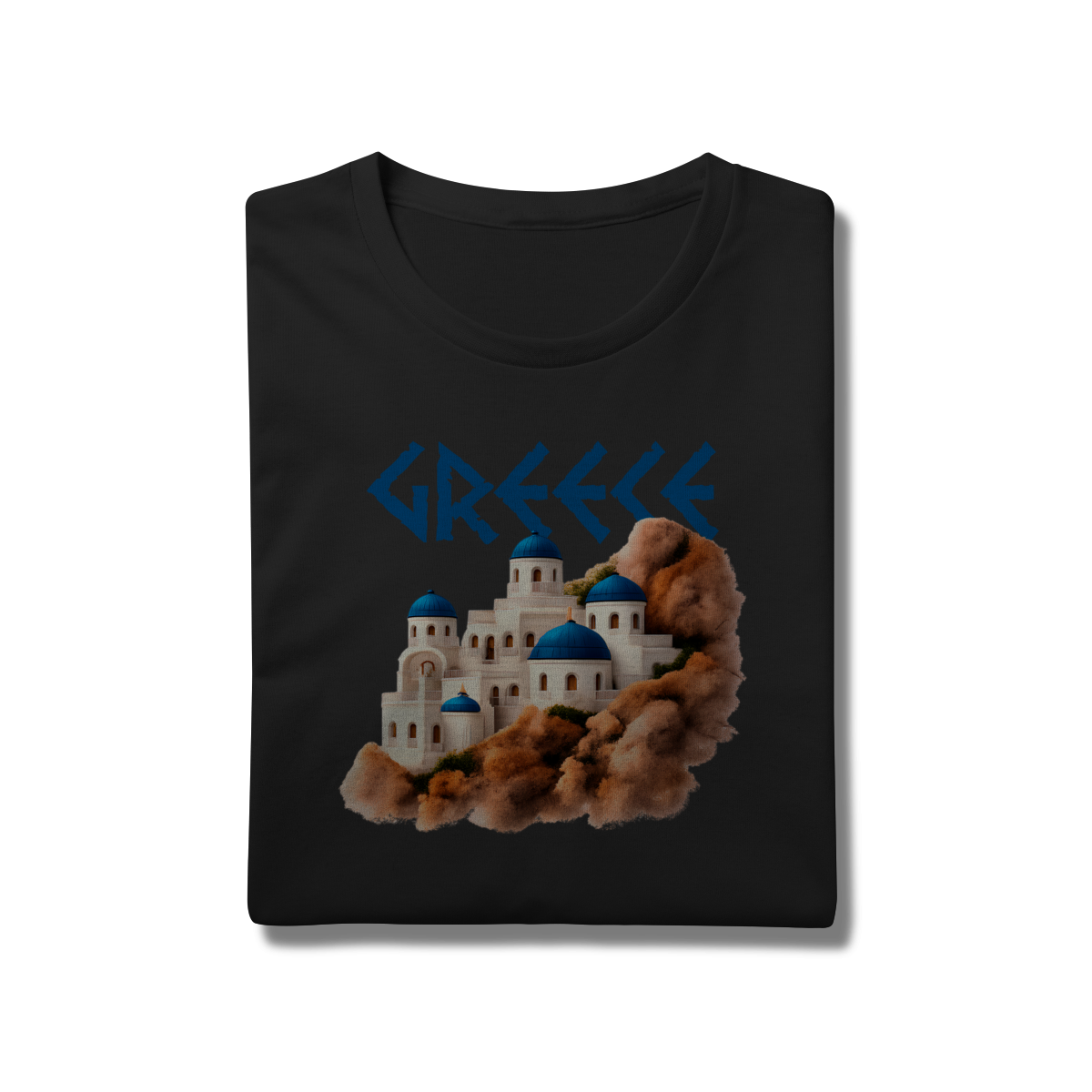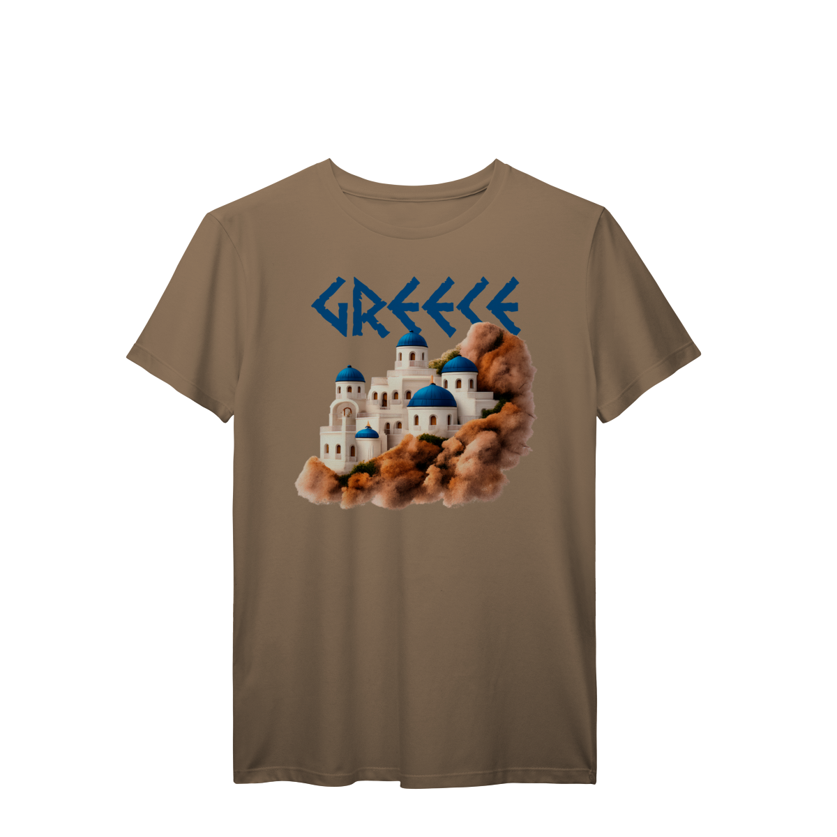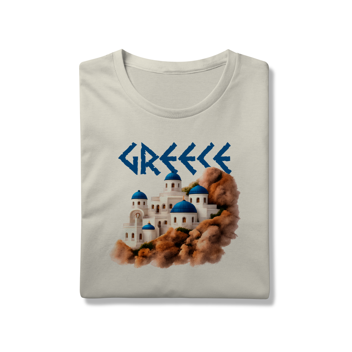 Com a palavra "GREECE" em destaque e uma ilustração encantadora das icônicas construções de Santorini — domos azuis e paredes brancas sobre rochas terrosas — esta camiseta é uma verdadeira homenagem à beleza arquitetônica e cultural da Grécia. Ideal para quem ama viajar, sonhar ou simplesmente vestir arte e história.