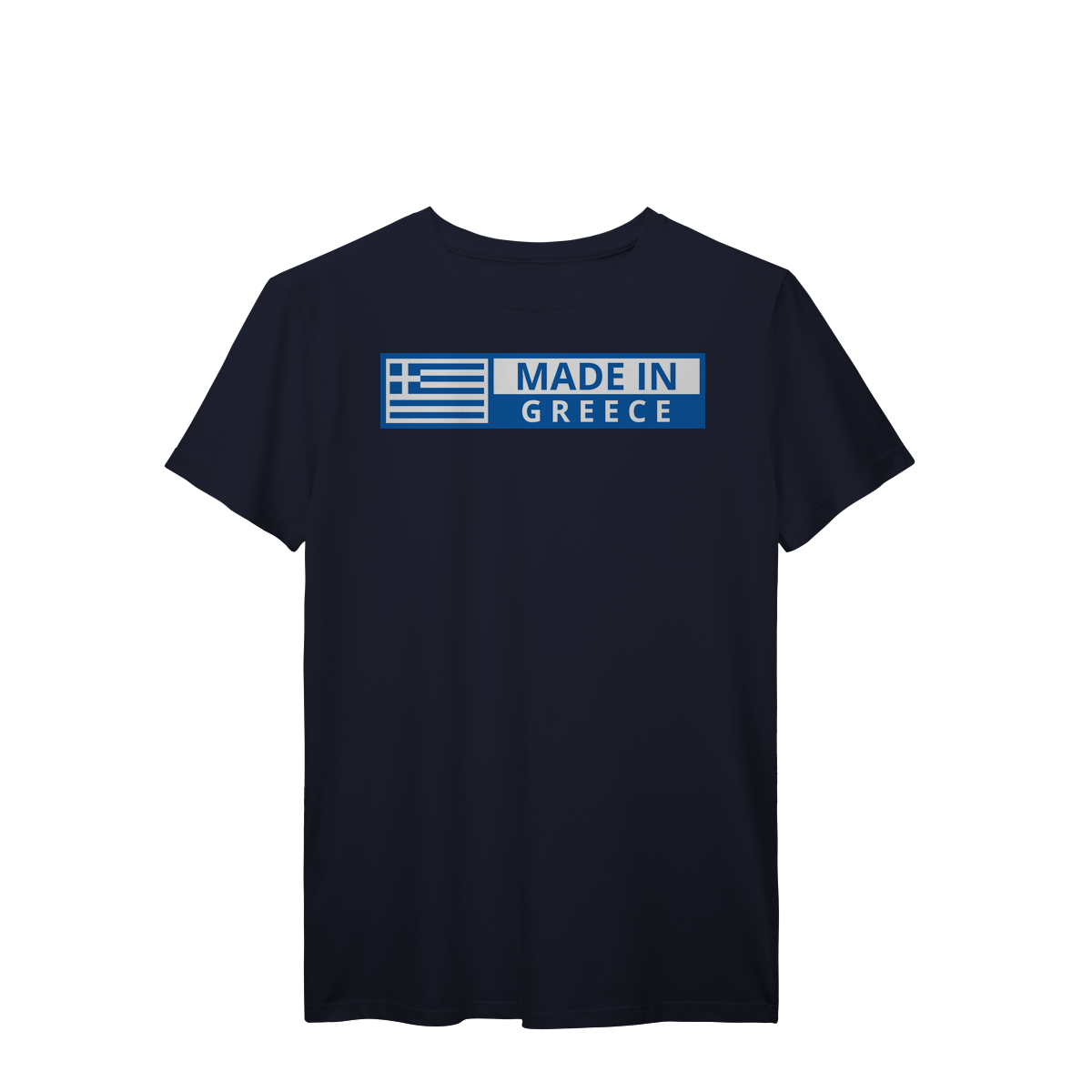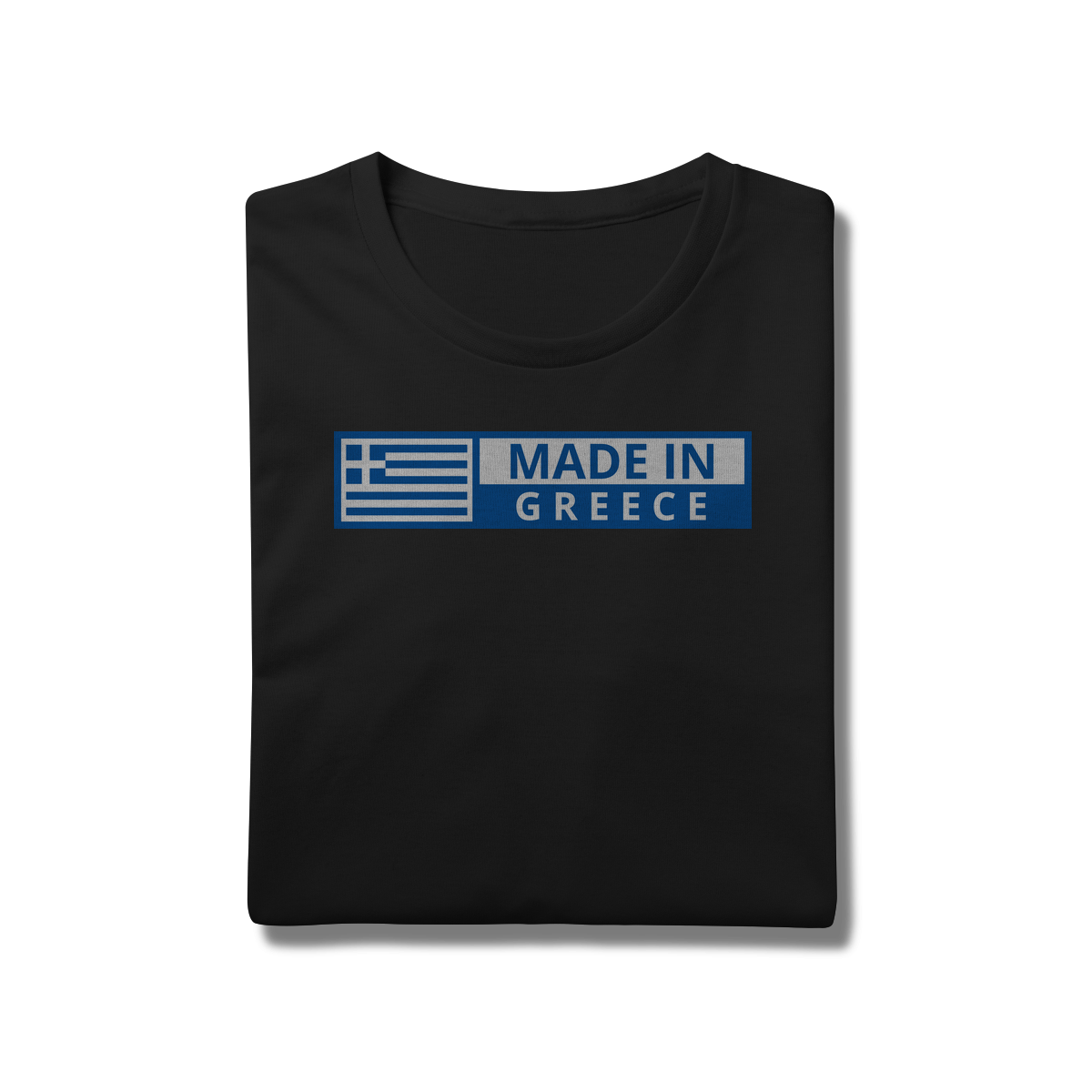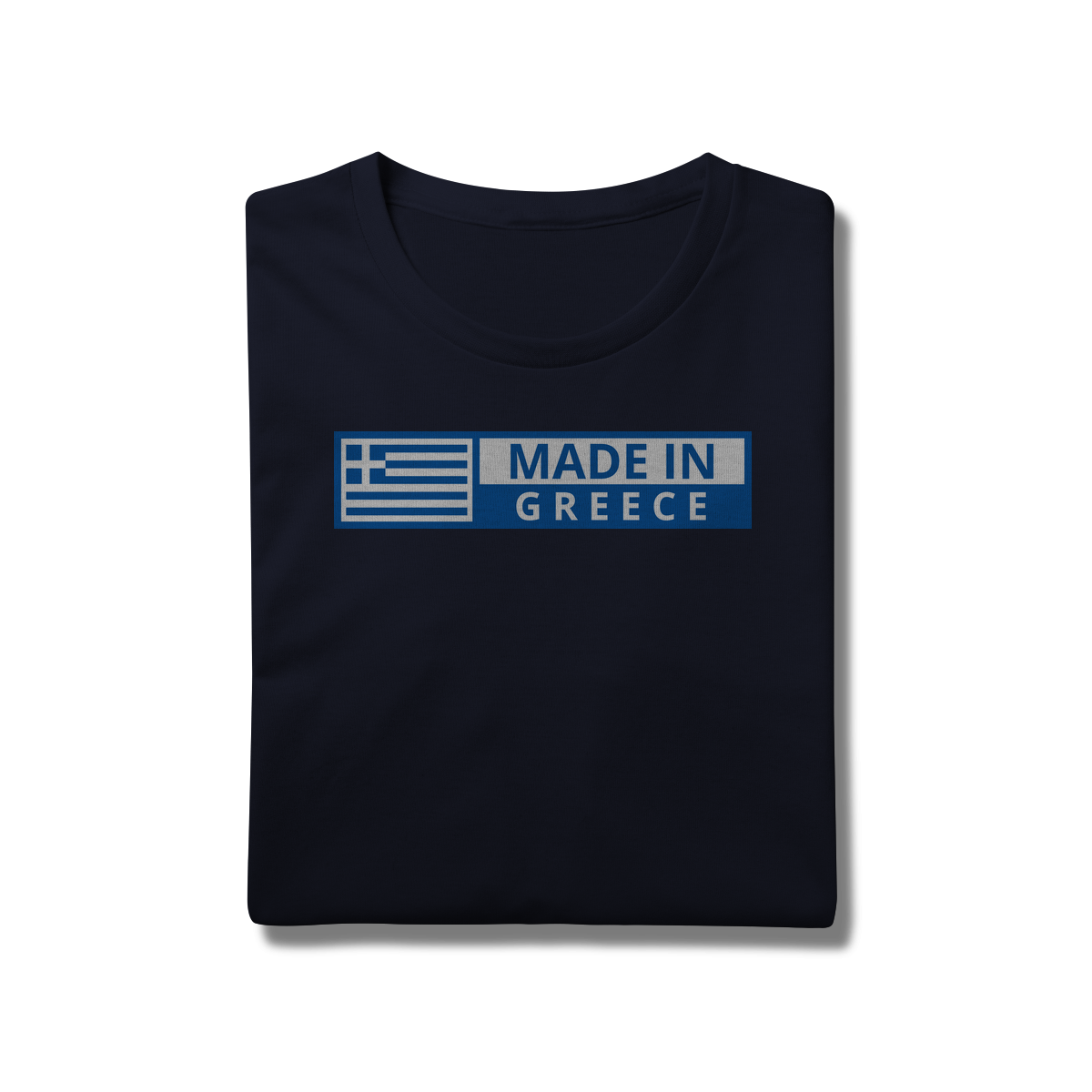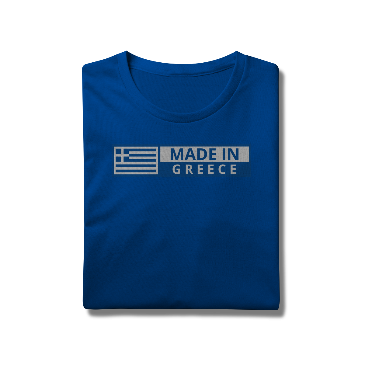 Esta camiseta celebra a essência da Grécia com um design marcante: a bandeira grega em azul e branco seguida da frase "MADE IN GREECE". Ideal para quem valoriza a origem, a cultura e a qualidade dos produtos gregos. Vista tradição, vista autenticidade.