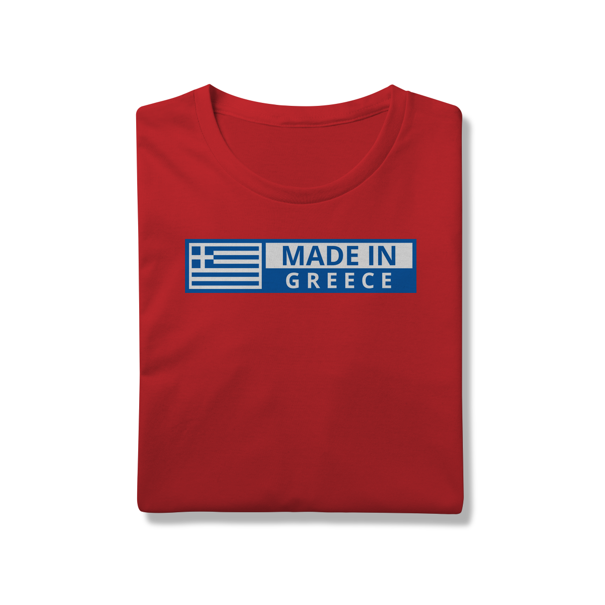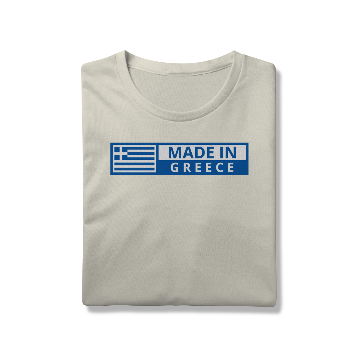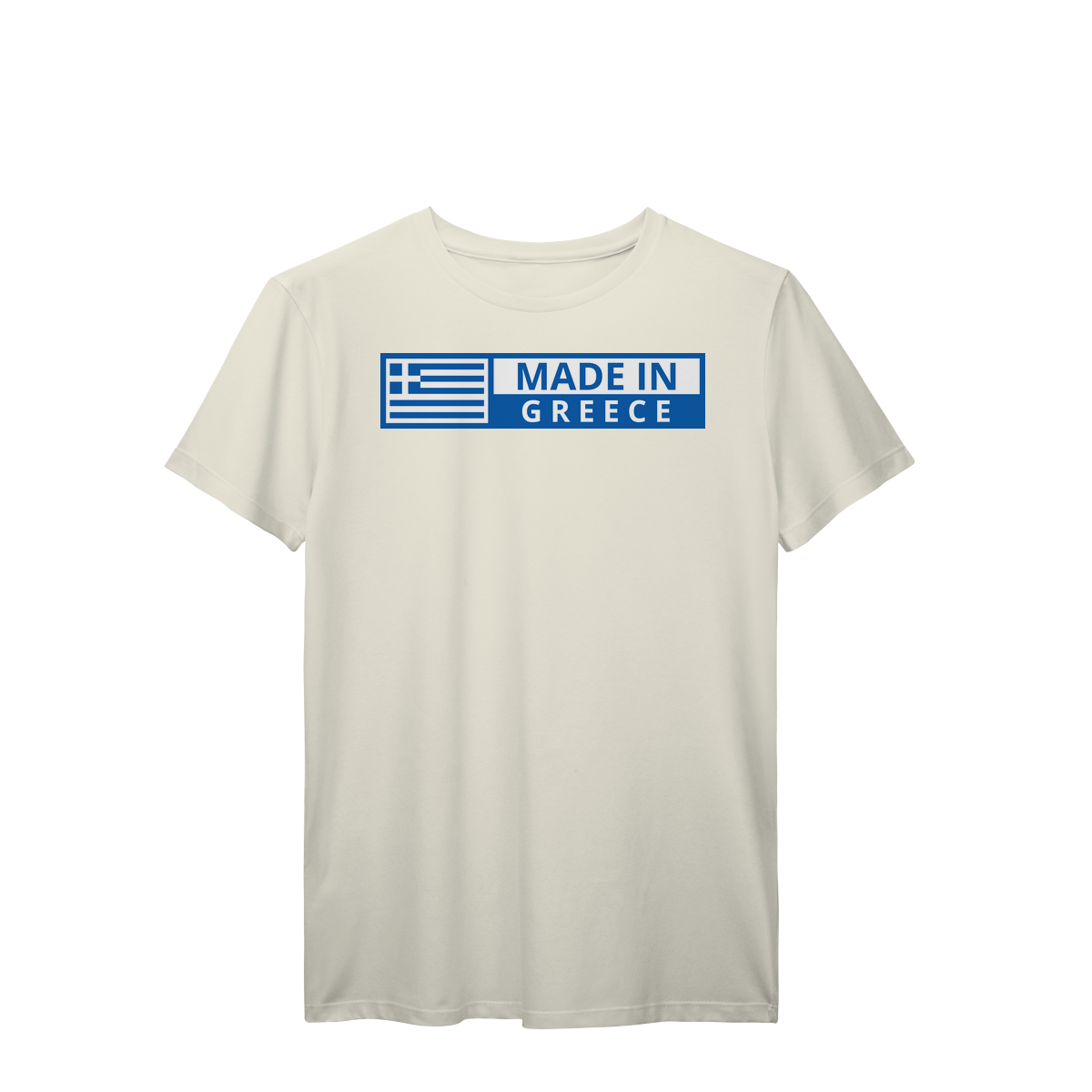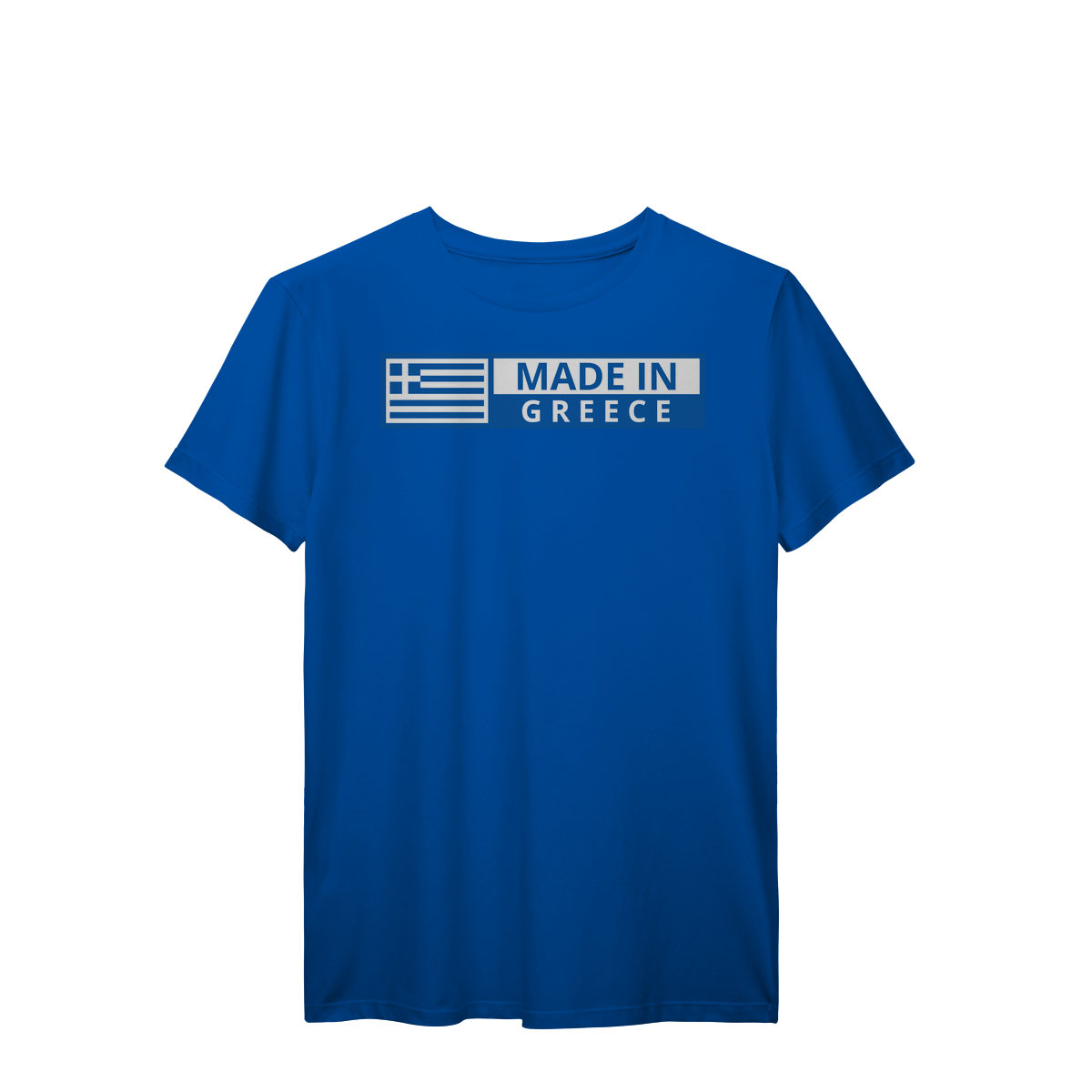 Esta camiseta celebra a essência da Grécia com um design marcante: a bandeira grega em azul e branco seguida da frase "MADE IN GREECE". Ideal para quem valoriza a origem, a cultura e a qualidade dos produtos gregos. Vista tradição, vista autenticidade.